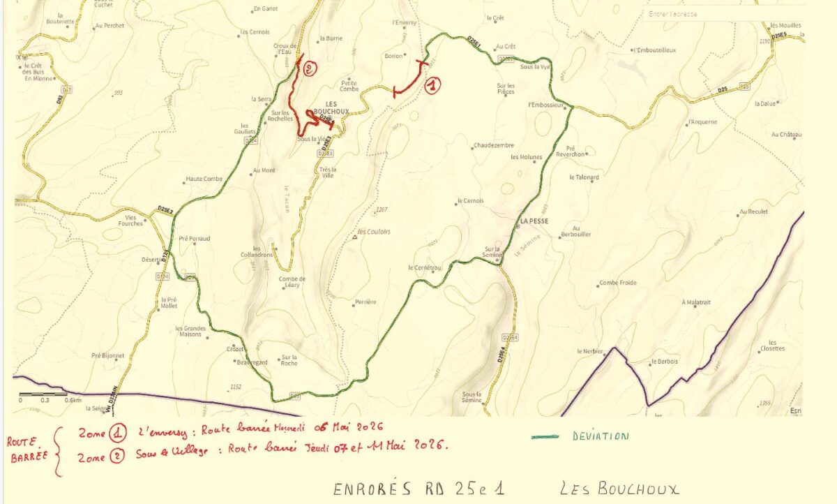 - 2 journées entre l’Embossieux et Les Bouchoux – RD25E1 : Déviation par Désertin